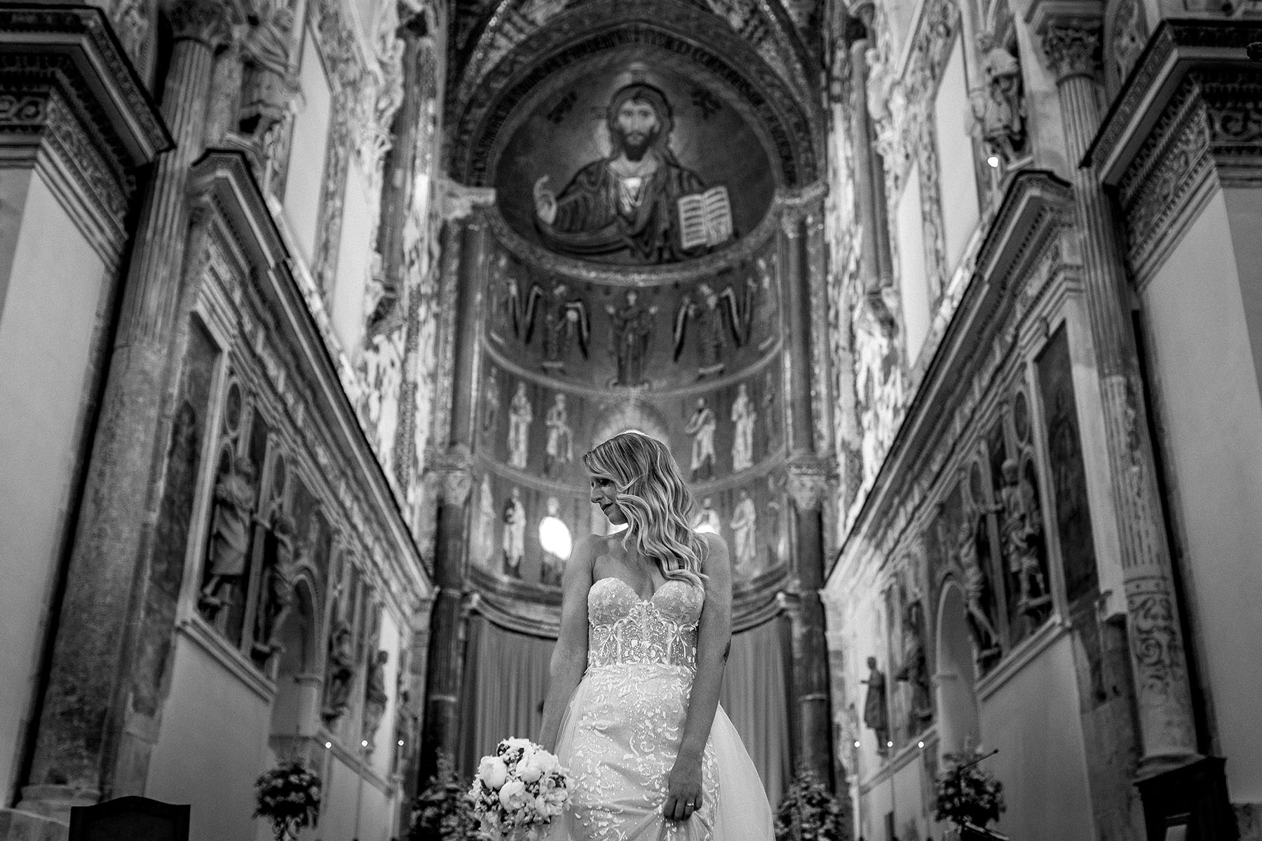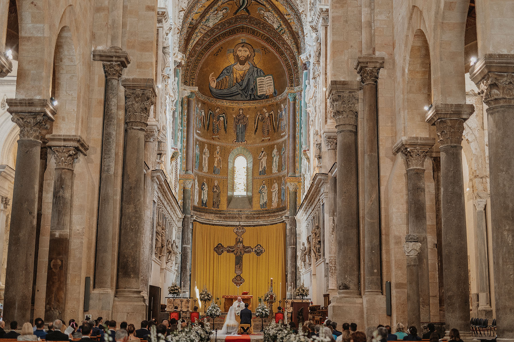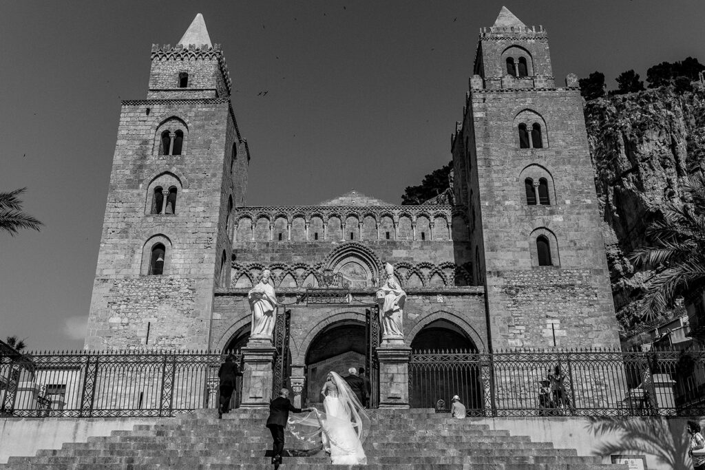 Its historic centre and the countless natural beauties of the surrounding area provide the ideal setting for creating a tangible and eternal trace of a day to remember forever. Starting with the famous Cefalù Cathedral, with its majestic gilded interior and the impressive figure of Christ Pantocrator, Stefano and Monica‘s wedding was marked by breathtaking backdrops that embellished every moment of their big day.